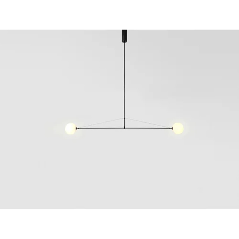 Mobile Chandelier 2 Suspension LampMobile Chandelier 2 is part of the newest lighting projects presented by Michael Anastassiades. Pendant lamps with minimal design in glossy black brass characterized by thin metal curves that support Opal spheres of diffe
