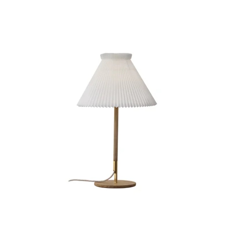 Made with high-quality materials and attention to detail, this table lamp is perfectly suited to modern and contemporary furniture styles. The structure composed of a circular base and stem made of oak wood is complemented by the presence of brass elements, which give the appearance of Model 328 LK 80 additional class and sophistication. The beautiful paper pleated conical diffuser, by filtering the light beam produced by the light source, achieves a ‘soft and relaxing illumination creating a cozy and warm atmosphere in rooms. Placed in a bedroom, living room or professional studio, Model 328 LK80 gives a unique and unmistakable style in spaces.