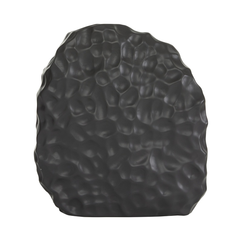 Modern and contemporary spaces will love this accent decor... The irregular-shaped round yet narrow-bodied vase features a textural fossil imprint throughout, finished with a semi-glossy opaque black glaze. The neutral tone will work with any color palette