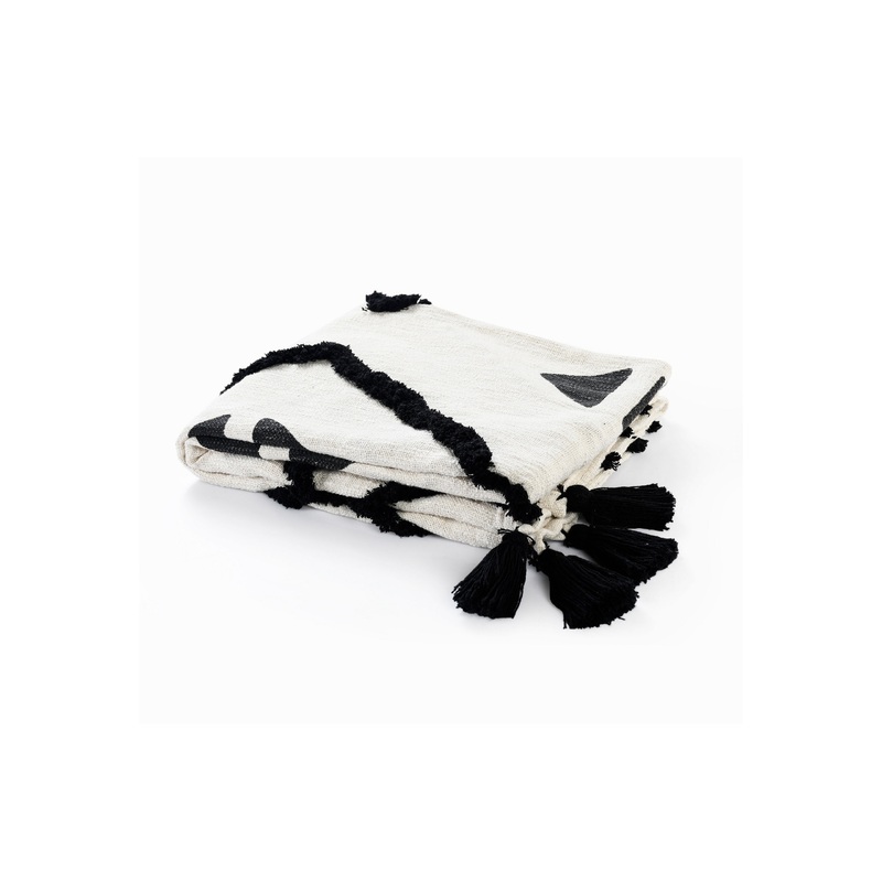 Designed with a balance of leisure and luxury in mind, this everyday accent merges well with multiple decor styles from bohemian to Scandinavian. This handmade piece features a black tufted and printed diamond design on a cream background complimented by corner fringe. This lightweight cotton throw is perfect for use in any season. With soft ivory and charcoal hues, this is the perfect versatile addition to the home.