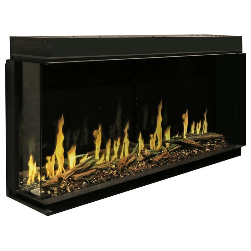 The Orion Multi series features the new HELIOVISION flame technology. Choose from three flame pattern options of hybrid, wood, and gas. Enjoy the six different flame color options with any of the three flame pattern options. The Orion has multi-color down lighting and ember bed features. The Orion Multi series has an 18 high viewing area and a 5″ deep ember bed. Operate all the features with either the included remote control, touch control panel, or the Modern Flames app. Decorate the Orion Multi with either black reflective glass, or driftwood log media. The Orion Multi really does live up to its name when it comes to installation. The Orion Multi can be installed with a front view, right corner, left corner, and 3-sided bay view. Insert this model into a wall, or mount to the wall of your choice. A dedicated 20 Amp (or higher), 2-pole (for 10,000 BTUs), breaker is required for this unit.
