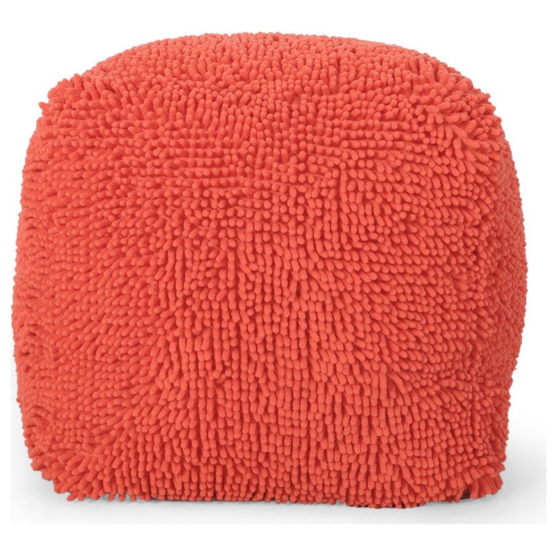 MICROFIBER CHENILLE: Highly-pigmented and soft to the touch, this pouf consists of microfiber upholstery that is naturally spill-resistant. Featuring long, twisted fibers and wide array of colors, this material is also exceptionally durable and will hold up under use.