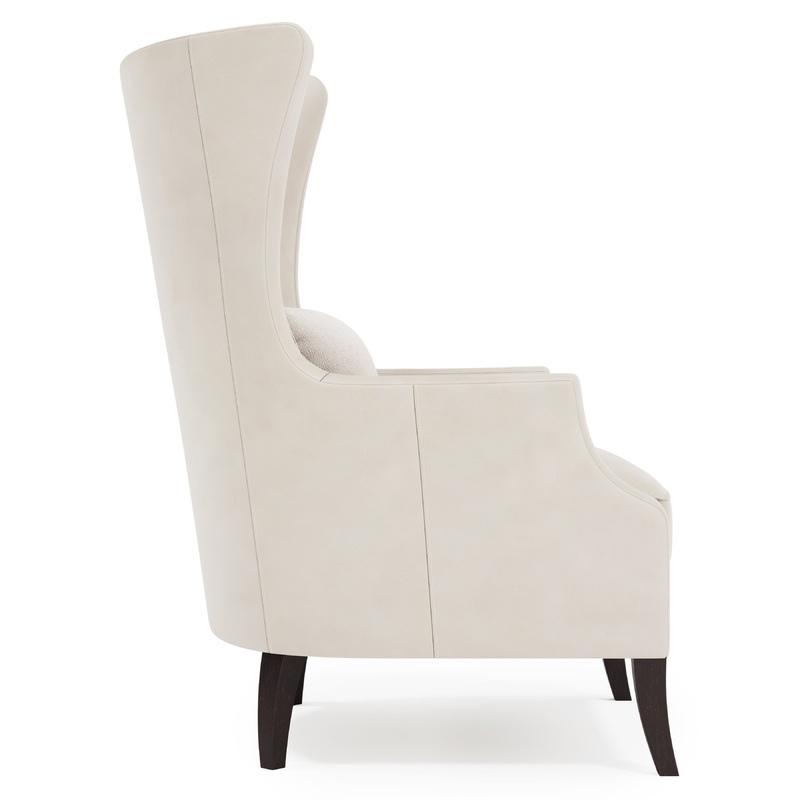 The Mona leather chair strikes a perfect balance between traditional elegance and a clean, modern aesthetic. Based on the classic wingback, the design features graceful curves, flared wings and slender sloped arms. Welt trim distinguishes the elegant conto