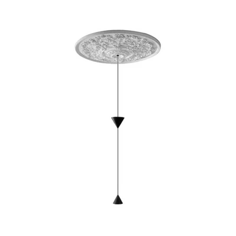 As always, the Karman brand blends originality and elegance in its creations. Moonbloom SE256 8B INT is a stunning pendant lamp with a unique appearance, capable of giving any place style and presence. Characterized by a fascinating circular rosette made entirely of white plaster, it is completed by a double conical black aluminium diffuser. These features allow the light sources to project a diffused beam of light upwards and a direct beam of light downwards, giving any room a relaxing atmosphere. Placed in a living, contract or commercial space, the Moonbloom SE256 8B INT will make any interior fascinating and unique.