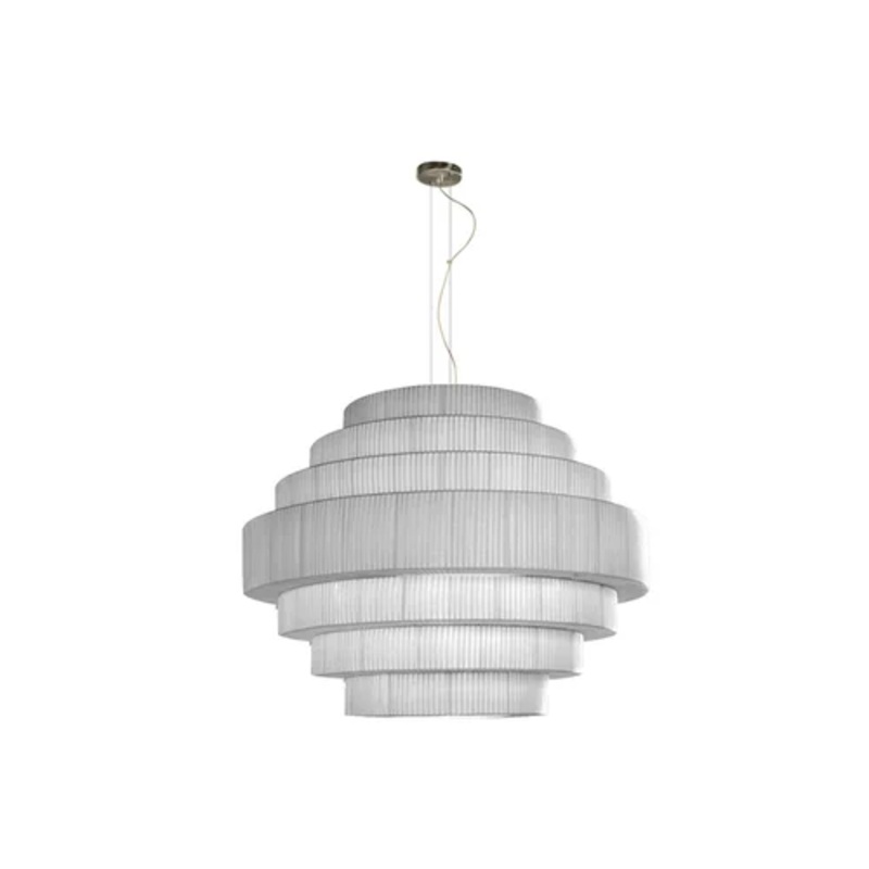 Mos is a collection of lamps producted by the famous and stylish brand Bover. This Collection is designed by the designer Joana Bover. Is available in different colours.This majestic collection spreads warm light, big balls with circular shape that fill the space and become high decorative elements with high light comfort. Due to its large measures, MOS are specifically indicated to contract market and indoor use. Its structure ends with an opal white glass diffuser that blends and directs bottom light. MOS has been manually manufacted with translucent ribbon.Light source: 5 x 9 W LED A60 E-27Materials: IronLower diffuser: Polycarbonate. Transparent electrical cable. Stainless steel tensor cables. Shade GWFI: 960