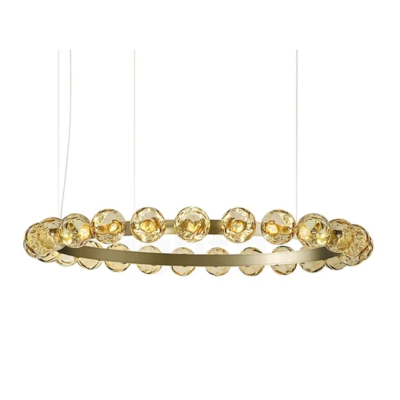 Illuminate your space with the ethereal elegance of the Muran R hanging lamp by Panzeri. This extraordinary creation is an extension of the Muran family, characterized by compositions of luminous spheres arranged in a crown. The rings are available in two sizes, with an external diameter of 80 cm or 110 cm, and can be combined to create vertical overlaps of multiple elements, adding a touch of dynamism and style to your environment. The extruded aluminum support structure is available in champagne and satin black finishes, providing a solid and sophisticated base for this magnificent lamp. The crown of transparent bronze-colored blown glass spherical diffusers adds a touch of sophistication and beauty, diffusing a warm, enveloping light. Power and fixing accessories are available separately and include rosette, power cord and ropes with ceiling anchoring devices, ensuring a safe and reliable installation. For overlapping multiple elements, you need to order the additional power and fixing accessory, allowing you to create custom and unique compositions. With the Muran R pendant lamp by Panzeri, you will have the freedom to create unique and striking atmospheres in any environment, transforming your space into a bright and fascinating work of art.