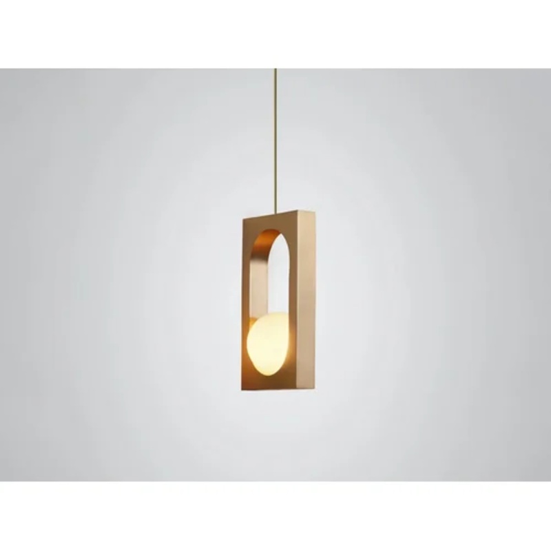 The sinuous and geometric design of this lamp transforms the light source into a true sculpture, creating a fascinating and engaging play of chiaroscuro. The solid brass structure, complemented by a fabric suspension cord available in gold or brown finish, features a delicate spherical opal glass diffuser inside, giving Mythos’ appearance additional stage presence and class. The warm and relaxing light produced by the light source allows this elegant pendant to create a charming atmosphere in rooms, making them perfect for pleasant moments of relaxation. Placed in a dining room, living room or public place, Mythos ensures elegance and functionality in spaces.