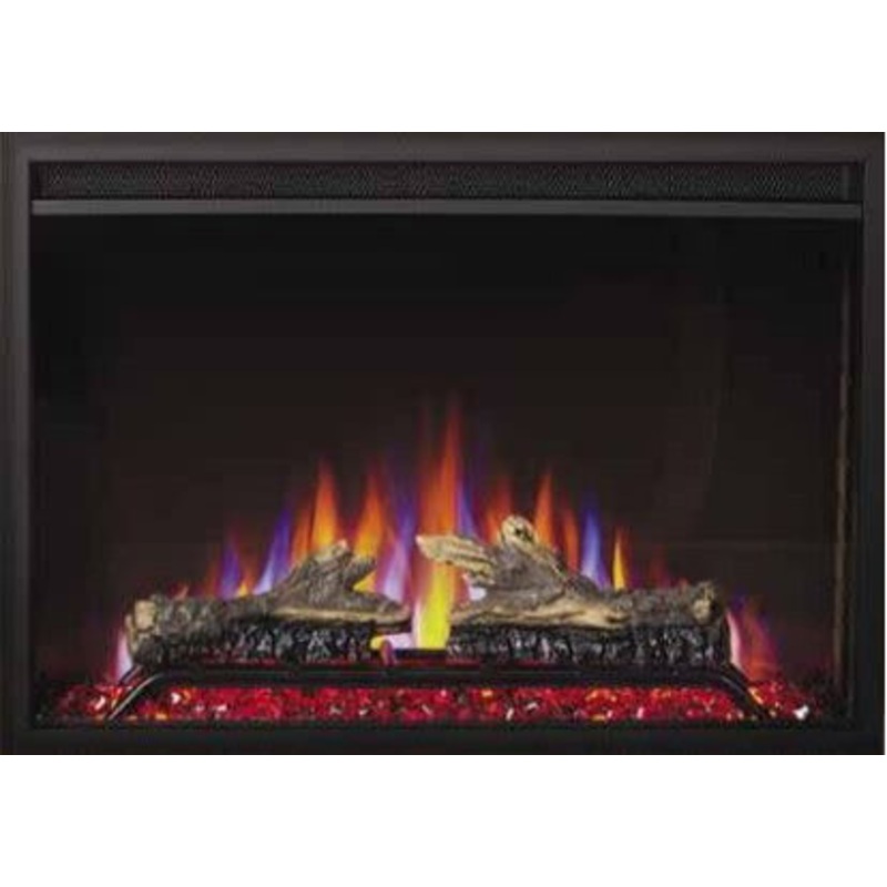 The Cineview 30 Built-In Electric Fireplace comes with both logs and glass media, creating simplicity and flexibility for the homeowner to change up their look based on the season. Featuring orange, blue and multi-colored flame options and 7 different ember bed lights the Cineview can be customized for any setting. Complete with self-trimming flange for a clean built-in finish. Plus, optional 3 and 4 piece trims are available when converting an old wood burning fireplace or creating a more substantial surround. The Cineview also comes standard with ECO BOOST mode, which acts like a 2-stage furnace, giving a little extra boost when it is close to reach the desired temperature and conserving energy when needed. Feature: The Napoleon Cineview 30 built-in electric fireplace is 20.25-inches tall, 30-inches wide, and 7.75-inches deep (51.44 cm tall, 76.2 cm wide, 19.69 cm deep) Quickly heat large rooms up to 400 square feet thanks to the robust heat output of 5000 BTUs and 1,500 Watts powering the unit Upgrade an existing fireplace opening or create a new and stylish space with this Cineview electric fireplace insert. Comes complete with self-trimming flange for a sleek installation and with optional 3pc and 4pc trim kits available Logs and crystal media in one box provide both contemporary and more traditional looks Boost mode sets the heater to maximum heat with increased blower speed for extra warmth. Eco mode sets the heater to half heat and uses half the energy Choose from orange, blue and combined multi-color flames and seven ember bed color options, as well as adjustable flame speed and brightness for the perfect look for every mood The integrated touch screen control panel is easy to use Plug and play for a more portable unit or hardwire for a permanent fixture Specifications: Blower Included: Yes Fuel Type: Electric BTU Heating: 10000, 5000 Depth: 7-3/4″ Height: 20-5/16″ Width: 30″