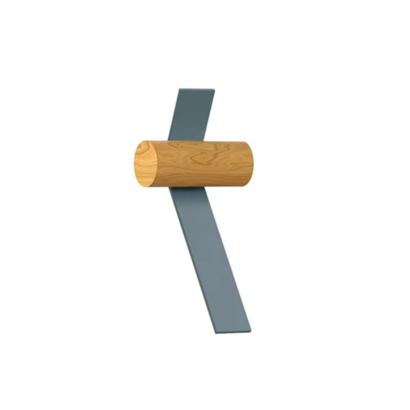 This wall lamp features a sophisticated blend of materials, combining epoxy powder-coated aluminum in a grey-green hue with the natural elegance of ash wood. The sleek design incorporates a ribbon-like aluminum structure seamlessly paired with a cylindrical ash wood counterbalance, creating a harmonious visual equilibrium. With its versatile dimensions, the Nastro 563.41 elegantly adapts to both intimate and open spaces, adding a touch of modern sophistication to any setting.