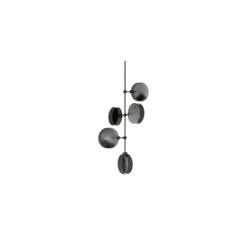 Nebulae Verticals modular configuration expresses a refined interplay between precise geometry and fluid transparency. Its anodised aluminium frame anchors layered glass discs, echoing the atmospheric depth of interstellar clouds. Ideal for expansive interiors, the chandelier creates sculptural rhythm in both residential and architectural contexts, offering ambient gradients that shift with perspective and time of day. The design lends itself to statement arrangements, suspended in voids or above communal zones, where spatial volume invites its full expression.