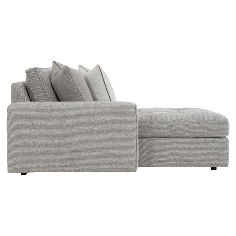 Casual comfort meets cool modern style in the Nest left arm chaise. Deep, luxurious seating and a sumptuous down cushion beckon. Clean lines and a generously wide track arm create a distinctly modern silhouette. Stitched flanged edges add a subtle nuance to this stylish but understated chaise.