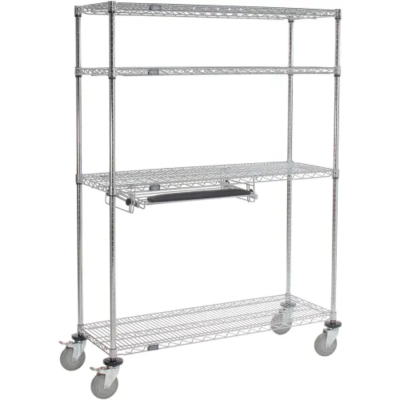 Nexel 4-Shelf Mobile Wire Computer LAN Workstation with Keyboard Tray, 48"W x 18"D x 69"H, ChromeNexel Mobile LAN Shelving Workstation holds your LAN equipment in one organized work center. Printouts and information can be accessed without running to diffe