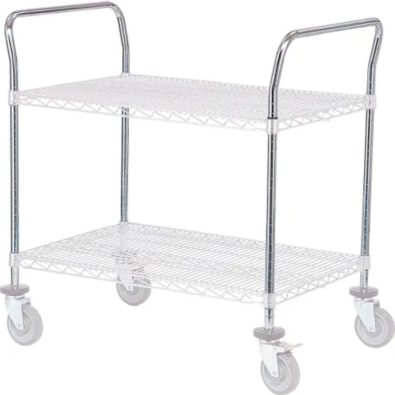 Utility Cart Handles are offset tubular handles constructed of 1" steel tubing, grooved on 1" increments for easy shelf adjustment. 33"H. Priced each, sold in packages of 2. Chrome over nickel electro plating creates a brilliant high gloss finish. Easy ass