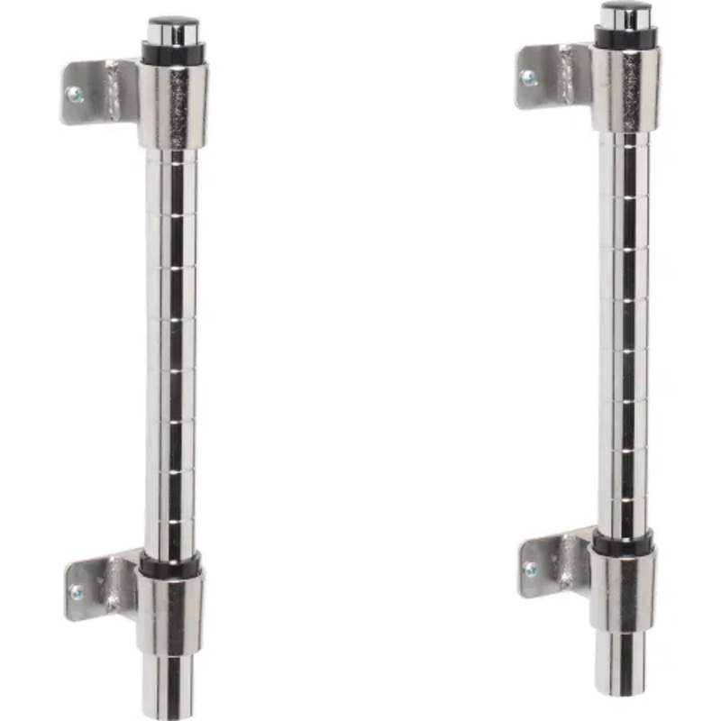 These kits allow you to easily mount cantilever shelves to a wall. The kit includes 2 posts and 4 wall brackets. Adjusts at 1″increments. Chrome over nickel electro plating creates a brilliant high gloss finish. Easy assembly. Limited One Year Warranty in dry application and usage. NSF approved dry use. Mounting screws and shelves not included.