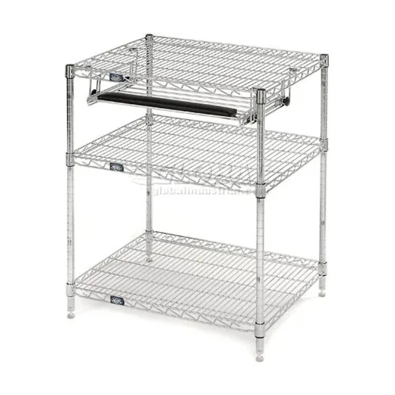 Nexel Chrome Wire Shelf Computer Workstation with Keyboard Tray, 30"W x 24"D x 34"H Transport computer and electronic equipment with ease with this mobile computer workstation. Open wire design minimizes dust accumulation and maximizes light and air circul