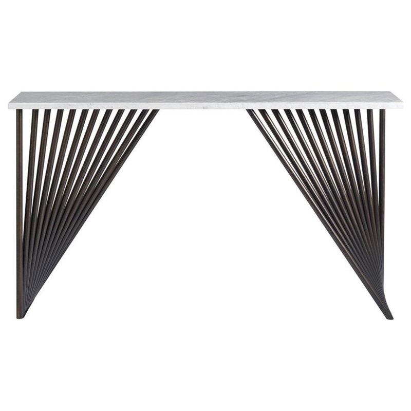 Nina Magon Marcel Console Table with White Stone Top and Bronze Metal Base – Contemporary – Console Tables – by Homesquare