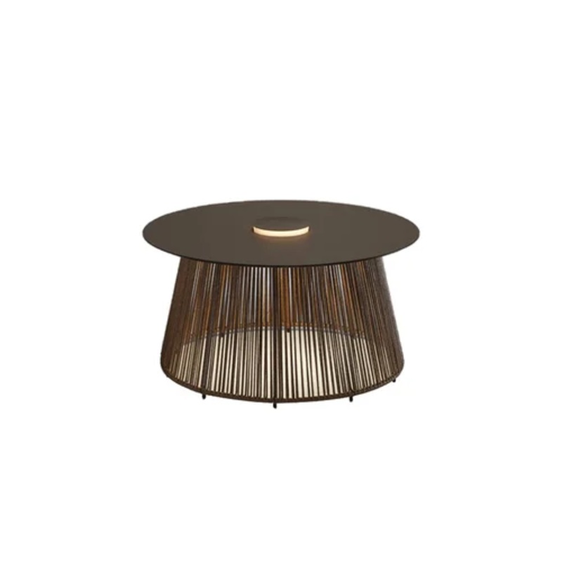 Nit/80/R Outdoor Rechargeable Floor LampNit/80/R Outdoor is a rechargeable outdoor floor lamp designed by Gonzalo Mil and produced by the brand Bover. Available in a variety of finishes.A circular surface that seems to float above a woven nautical rope bas