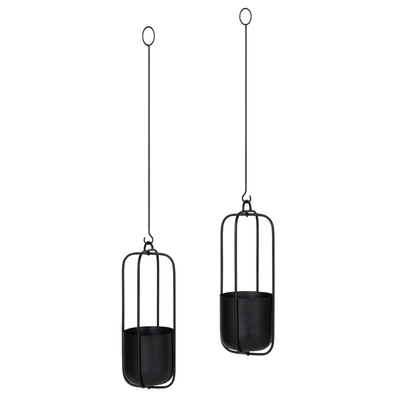 Blend modern design with decorative greenery in the lovely Nobrey hanging planters! Designed with modern minimalism and practicality, the Nobrey features a pop-up crossed frame, where a sleek plant pot sits. It portrays a sophisticated, geometric look that draws the eye to your fabulous hanging plants. Each Nobrey planter was constructed from 100% metal material with a black finish, giving them a sleek and high-quality durability for your favorite faux greenery. The frame and pot’s overall dimensions are 5.5 inches wide by 5.5 inches deep by 16 inches tall, making the Nobrey eye-catching and perfect for display in an entryway, living room, bedroom, or bathroom. The frames also hang from metal hanging rods of varied sizes, giving you a graduated plant display. The smaller plant rod size is 20 inches long, while the larger rod is 26 inches long. They’re perfect for creating a staggered display of greenery in a set or spread throughout your home for a cohesive theme! The Nobrey hanging planters are easy to hang with metal eyelet hangers on top of each rod.