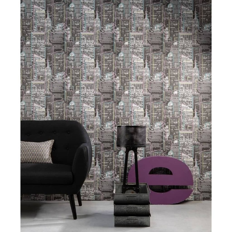 This Noordwand Good Vibes collection, featuring grey skyscrapers glow in dark wallpaper, is known for funky and colourful patterns and chalkboard wallpapers. Add a unique statement to your home with these never dull wallpapers. Nonwoven wallpaper has a pap