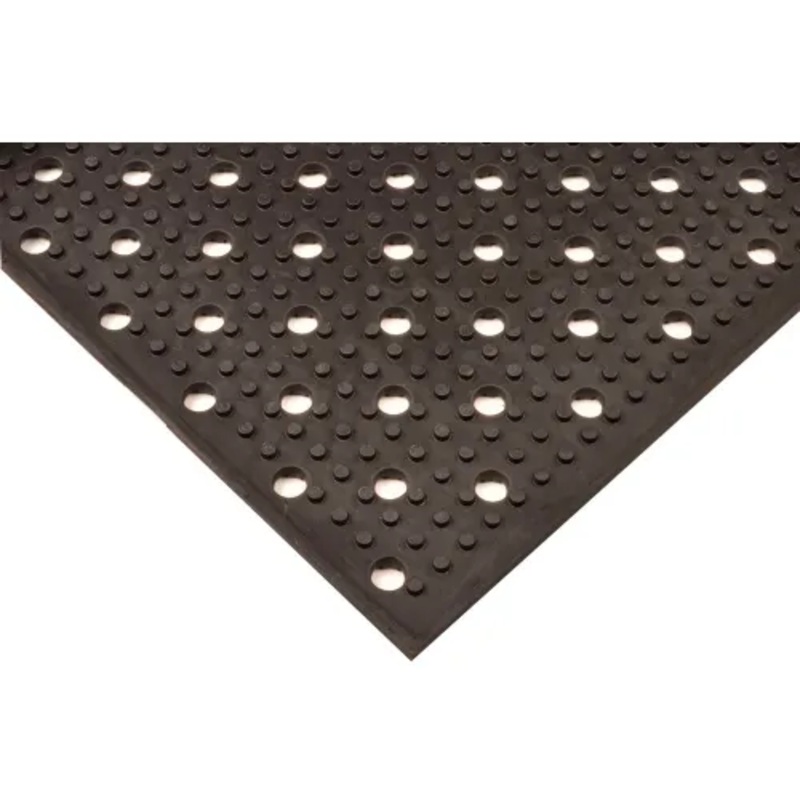 This Reversible General Purpose Drainage Mat is for use in general purpose applications. Non-skid surface for added traction. Reversible for extended life. Drainage system for use in wet areas. Low profile for easy cart access. Black finish. 3/8" thickness