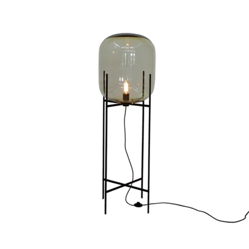 Oda Floor Lamp - Big Grey / BlackDesigned by Sebastian Herkner for Pulpo, Oda is a floor lamp made with lampshade in hand-blown glassandpowder-coated or chromed frame.Oda is a lamp by the modern and simple design that is inspired to the tanks from the Bern