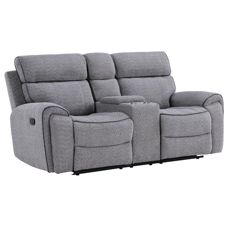 The Omni 3 Piece Reclining Living Room Set in Gray transforms your living space into a cozy retreat. This inviting set includes a reclining sofa, a reclining console loveseat, and a glider recliner, each designed with your comfort in mind. The sturdy hardwood and manufactured wood frames, along with coil spring cushions wrapped in resilient foam and polyester, provide lasting support and comfort. Wrapped in 100% polyester nubby Boucl fabric, the set feels soft and warm, perfect for unwinding. The transitional design features wrap-around arms and bucket seat cushions with a contrast welt, adding a touch of sophistication to its cozy appeal. Fully upholstered chaise recliner footrests let you stretch out in comfort, while the glider recliner’s soothing rocking motion helps you relax. The loveseat’s convenient cupholders and storage cubby for remotes make it easy to keep essentials within reach. Create a welcoming and comfortable living room with this beautifully designed set.