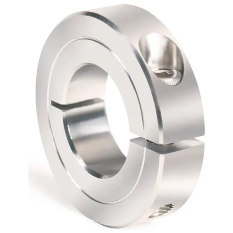 Stainless Steel One-Piece Clamping Collar – Recessed Screw Head. Recessed Screw Head provides an outside surface free of major projections for safety. Design fully engages the shaft without marring. Greater axial holding power than set screw collars. Effective on hard & soft shafts.