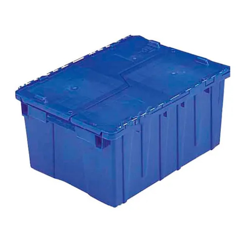 Flipak attached lid distribution containers keep contents safe and secure when shipping or distributing. Safely and securely ship and distribute materials with these durable, affordable shipping containers. Ideal for health care, pharmaceuticals, periodicals, apparel and more. Reusable totes can be used for over 250 trips. Made using high density polyethylene. Interlocking lids are permanently attached using heavily reinforced hinges. Attached lid containers allow nesting when not in use and with lids open to help reduce return shipping costs. Raised lip edges allow secure stacking when closed. Molded-in grip handles have an integral hasp to accept cable ties or padlocks for security. Sold in carton quantities.