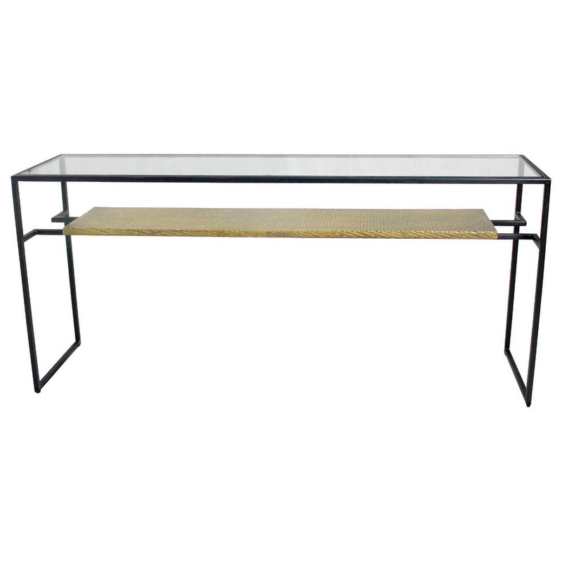 Orlando Cooper Table With Glass Top and Bronze Metal Cladded Shelf on Iron – Industrial – Console Tables – by Moti