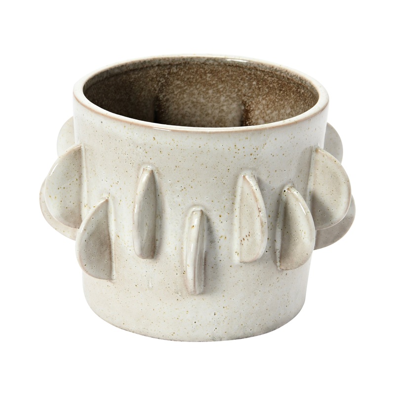 This Handmade Stoneware Planter with Reactive Glaze in Antique White makes the space more inviting and stylish. This planter is handmade from 100% stoneware material that is sturdy and durable. Its round shape and 3D accents give it a striking and modern l
