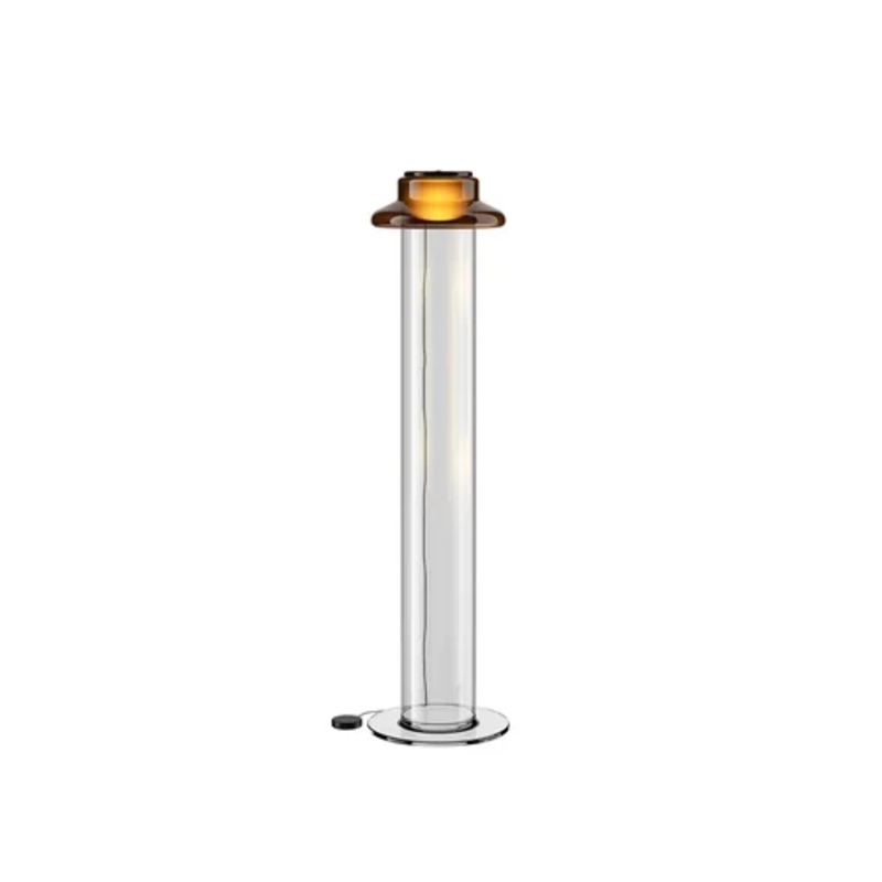 The Pace 28 – F Floor Lamp showcases a seamless interaction of light and glass, offering refined gradients and reflections as illumination travels through its layered structure. Crafted with a focus on minimalism, this lamp stands out due to its slender and lightweight profile, all set upon a clear glass base. It features a touch dimmer, enhancing user experience with a customizable light intensity.
