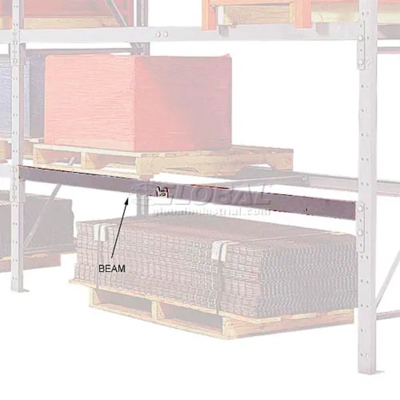 3"H Beamfor Structural Steel Pallet Rack Beams bolt to Upright Frames to secure connection and help prevent accidental dislodging. Adjust on 2" increments. Gray enamel. Meets AISC and RMI standards. Sold in pairs.