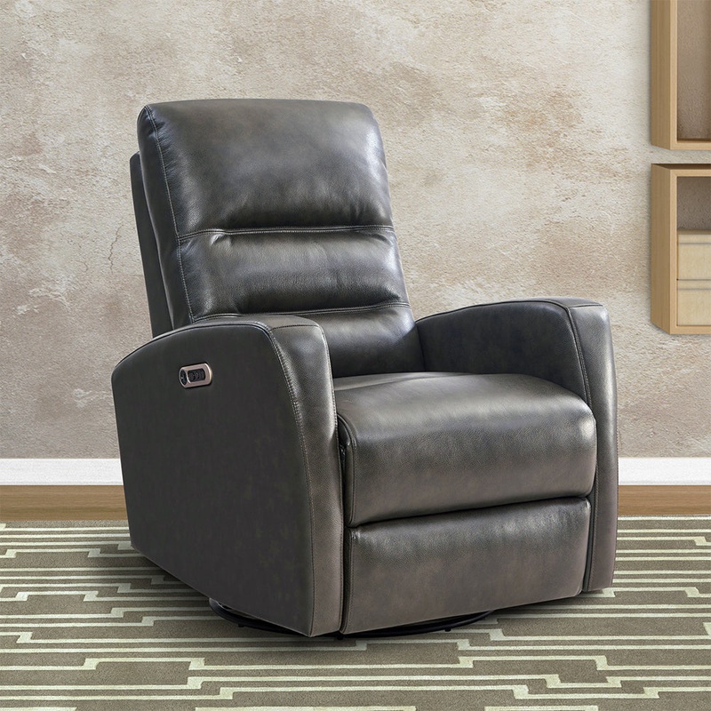 It's hard to stay awake when you're in the comfy embrace of the Ringo power swivel, glider recliner. A buttery soft, top grain leather in Florence Grey highlights its sophisticated silhouette and tailored appeal.Features:"Triple power features swivel, glid
