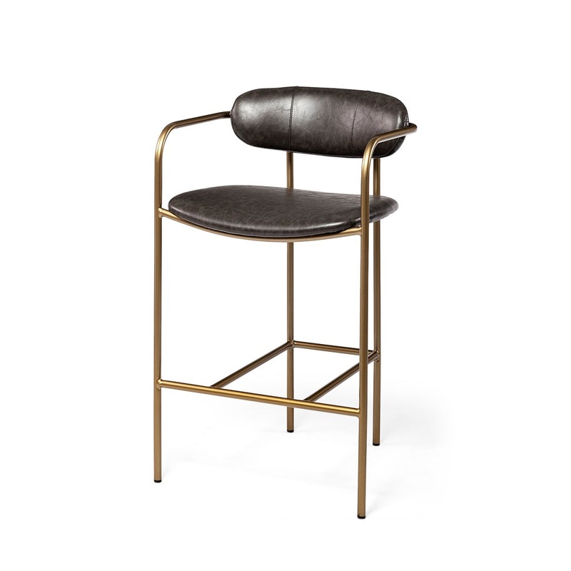 The Parker is a simple yet stylish counter stool featuring a deep brown faux-leather seat and back perched atop a sleek, four-legged metal frame.Deep brown faux leather Upholstery: The Parker, featuring an open-back seat wrapped in deep brown faux leather,