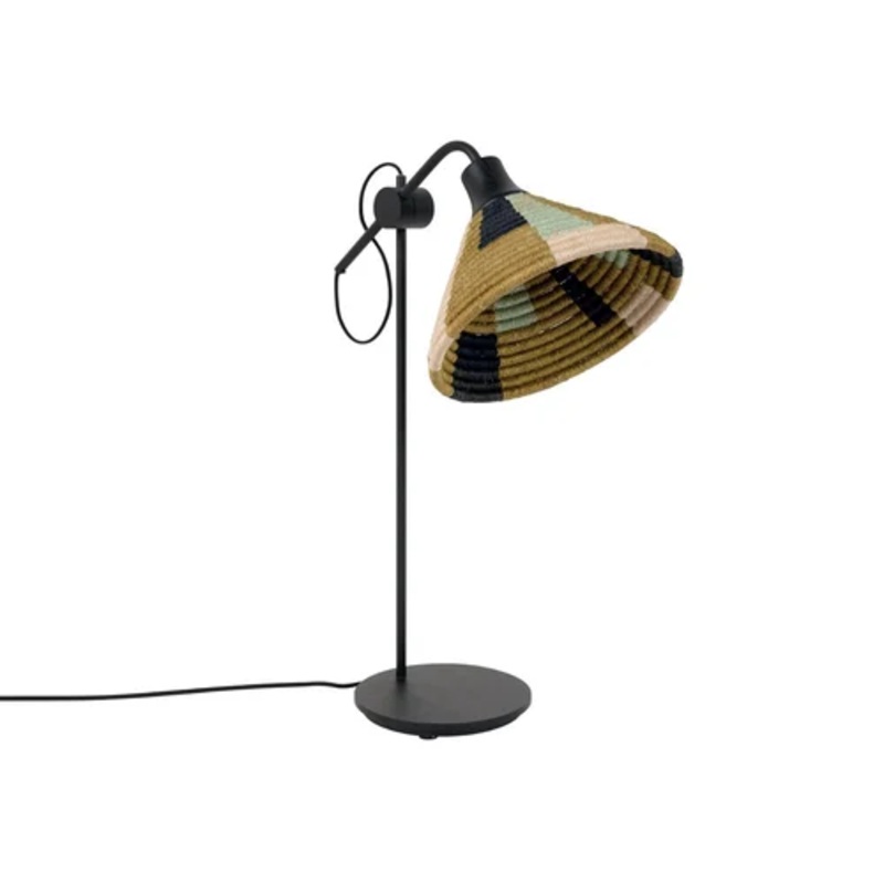 Parrot Table LampParrot is a table lamp designed by Jette Scheib and produced by Brand Forestier. Available in different versions.Parrot is an elegant table lamp, composed of a black metal body and an adjustable shade woven with abaca threads. Inspired by