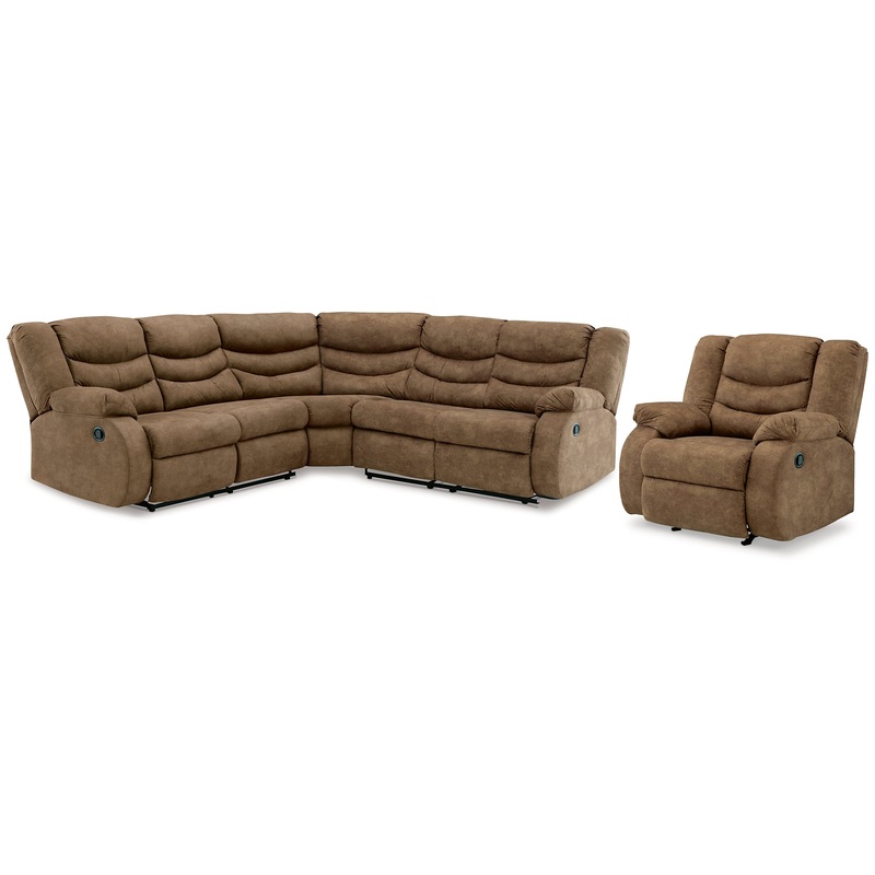 Affordable luxury made easy. This seating package is essential for living room lounging. Its warm brown faux leather is well-suited to mix and match with your existing pieces. Pull tab reclining keeps you covered when it comes to comfort. And the set's fun