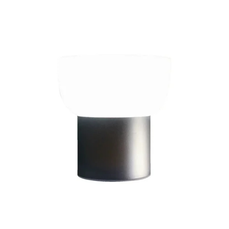 Patio is a wireless lamp ideal for installations, designed to illuminate a table, either indoors or outdoors, without the need of a plug. Perfect for its use in hotels, restaurants, terraces; the base has silicone stoppers to prevent the luminaire to slide, in case the surface is not stable, as in boats.Thanks to its polyethylene roto moulded shade, the light is dissipated evenly illuminating the space without shadows, while the aluminum body accommodates the battery.