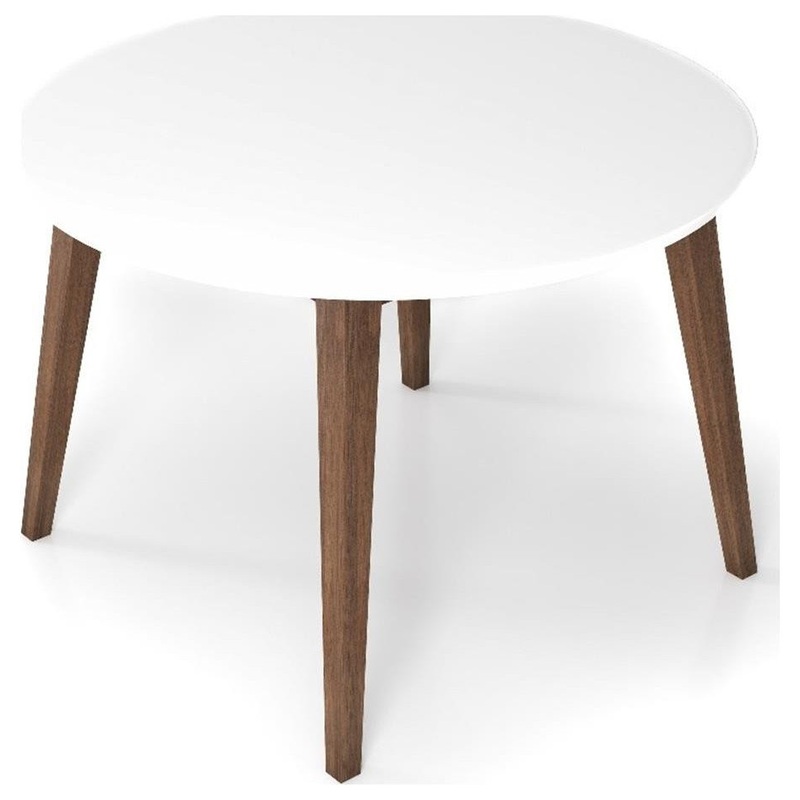 Add this dining table to your space and then fearlessly host dinner parties knowing you have a stylish place for your guests with the Mid-Century Modern Style Pemberly Row round Dining Table in White. Crafted of quality solid wood, its durability and longevity will ensure countless sittings. Its simple design means versatility and enhances any dining area, kitchen or breakfast nook with warmth and sophistication. This table comfortably seats up to four. Can be cleaned with a non-abrasive cleaning solution followed by a quick microfiber cloth. Removable legs allow for simple delivery for tight spaces. Available in a variety of timeless colors, you’re sure to find something that matches your dcor.