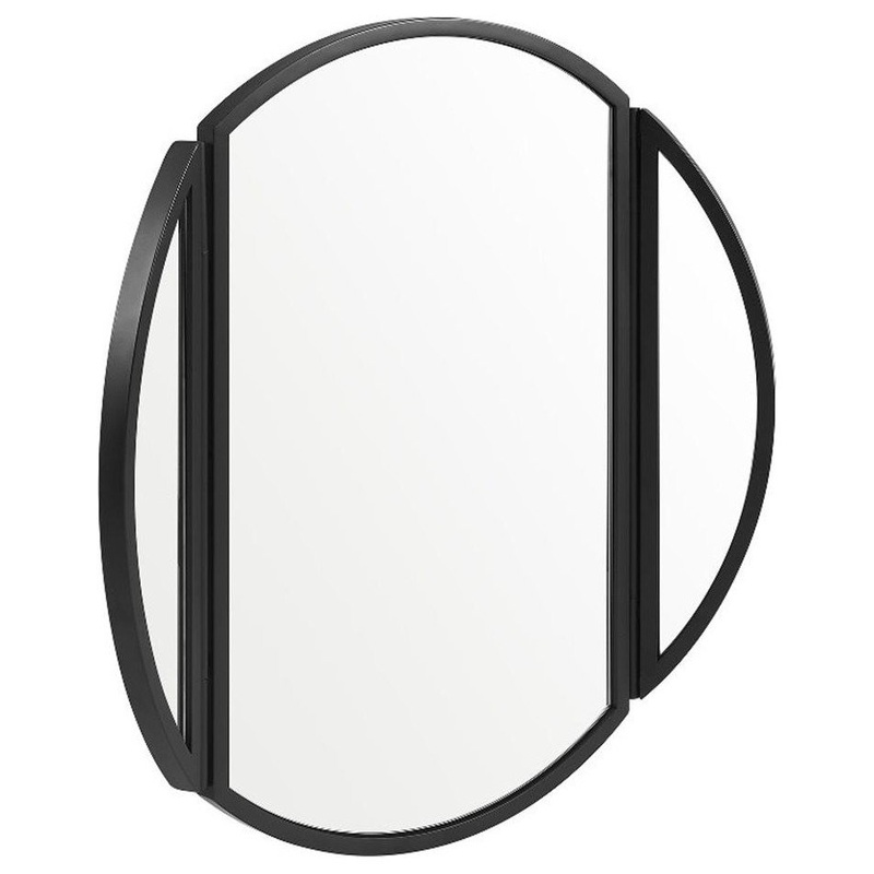 Bend your space to your will with this modern round mirror. Hinging sides lend a unique angle to a classic staple so you can express your interior style with minimal effort. The included wall-mounting cleat allows you to hang this lightweight mirror anywhere you like, with the sides angled in or out. With its round shape and painted, black metal frame, this stylish piece can sit perfectly perched anywhere, whether that be above your entryway table, dining room buffet, or the bathroom sink.