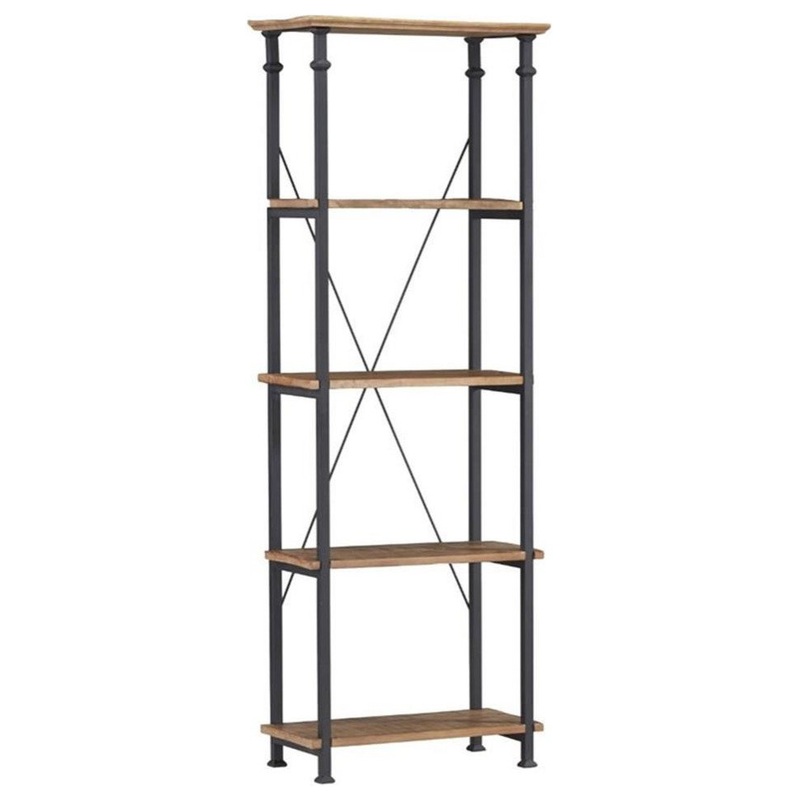 Blending the look of vintage industrial with modern design is the Pemberly Row Collection. Burnished rustic solid wood planks are framed with wrought iron style metal supports in this stylish home office offering. The desk features dual base support shelves that draw inspiration from the racking seen in so many industrial settings. A matching bookcase is also available.