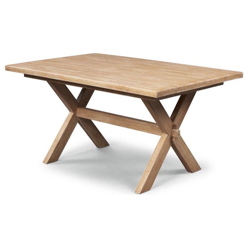 Traditional countryside meets style and modern function in this Cambridge Dining Table by Pemberly Row. Crafted of hardwood solids with finger-joint construction and a unique, hand-rubbed, whitewash finish. True trestle construction with lower support rail