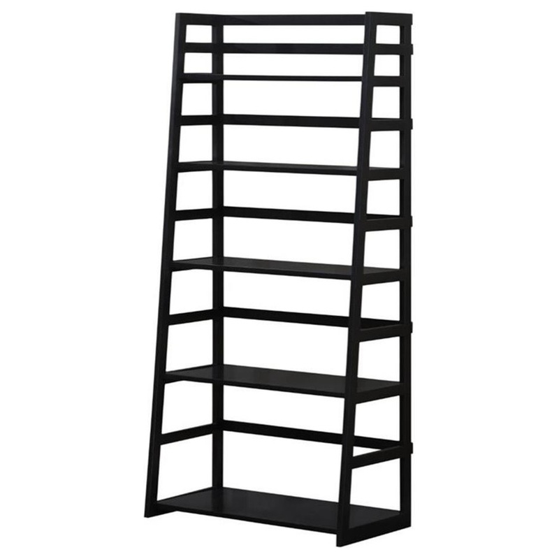 Pemberly Row Transitional Wood (63″ x 30″) Ladder Shelf Bookcase in Black – Transitional – Bookcases – by Homesquare