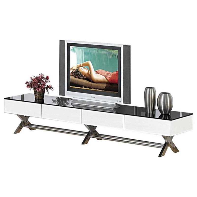 Perk up your living area with the addition of this white TV stand. Made from wood, its sleek black and white finish makes a stunning display in your entertainment area. Features: -Material: MDF -Black and white color palette for contrast -X-style legs for