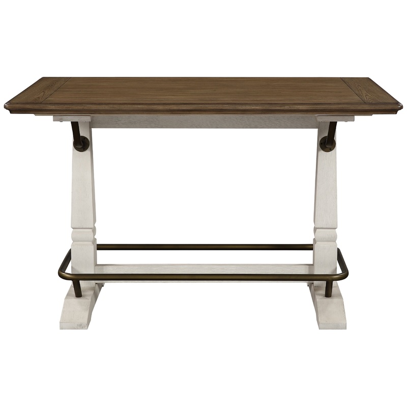 The Pendleton Counter Height Gathering Table features a casual two-tone finish that is warm and welcoming. Featuring a plank-effect table top with a saloon-style galley rail, this table makes your family and guests feel right at home. Pair with the matchin