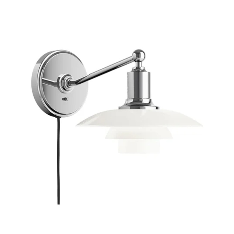 Designed by Poul Henningsen for Louis Poulsen Ph 2/1 is a wall lamp made in chromed aluminum, brass and white glass.