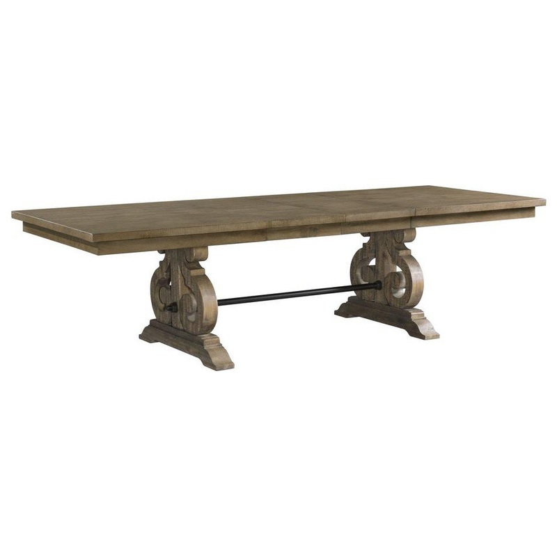 The Picket House Furnishings Stanford Grey Standard Dining Table brings refined style and warm design to your dining area! This large rectangle table is ideal for any family or for anyone who enjoys hosting dinner parties. The table without the leaves, measures 76 wide, if you need more space add one of the two removable leaves. In total, including both of the removable leaves, this table can extend to 112 wide, which is plenty of space to have a family get-together or host a dinner party. Not only is this table practical, it’s also super stylish. The table base legs feature a reverse scroll designed trestle, that catch your eye. The rectangle dining table is finished in a dark grey finish and distressed marks are present throughout. Add the Stanford Grey Standard Dining Table to your home for a cool, transitional design that will last for years to come.