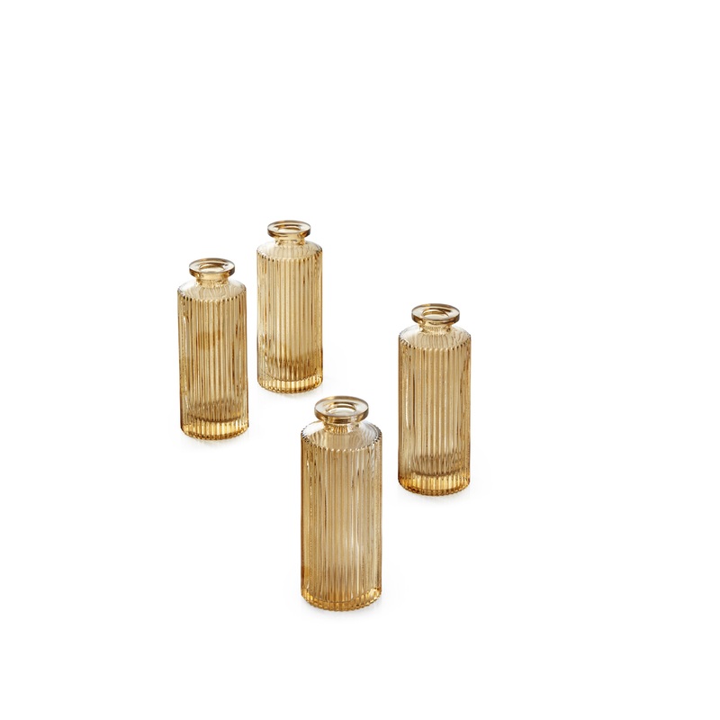 These vases will easily fit in your decor plans to be a centerpiece for a vintage wedding theme or a casual garden party, outdoor dinner table or event. Our pleated glass bottle bud vase will help you create an elegant look with either a monochrome display with a singular type flower or mix up of different flower stems. Each vase measures 5.25″ Tall and 2″ Diameter and is sold as set of 4. Serene Spaces Living specializes in creating good quality accents that look great anywhere!