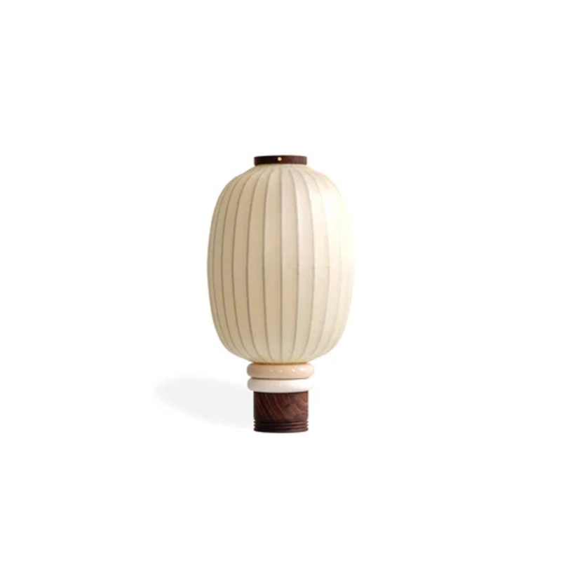 The Plum Charme is an embodiment of serene beauty and timeless elegance, perfect for augmenting various interior styles. Its design narrates a story of strength and promise through its thoughtful material selection and craftsmanship. The base, crafted from walnut and porcelain, provides a sturdy and refined foundation. The lampshade, an intricate blend of bamboo, walnut, and metal, complements the base with a textured allure. Each element is meticulously colored by hand with TC fabrics, amplifying its unique character.