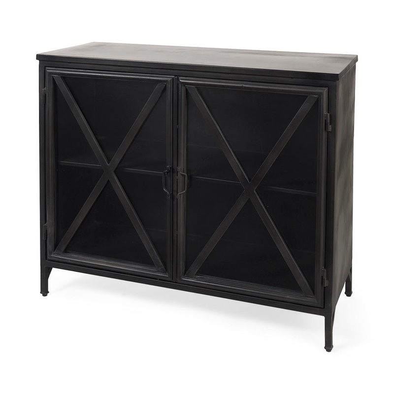 The Poppy is a black metal sideboard featuring two glass-lined doors and ample storage space.Sturdy, All-Metal Construction: The Poppy sideboard features a solid metal body finished in a stunning black polish. The solid metal composition ensures unparallel