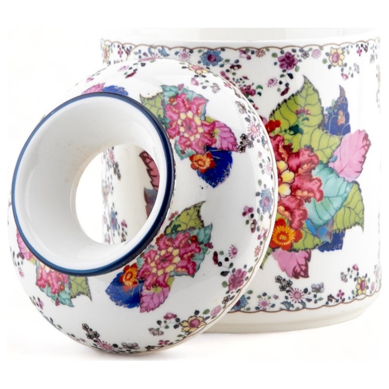 [5Lx5Wx7H] Porcelain Round Tissue Box In Tobacco Leaf Pattern